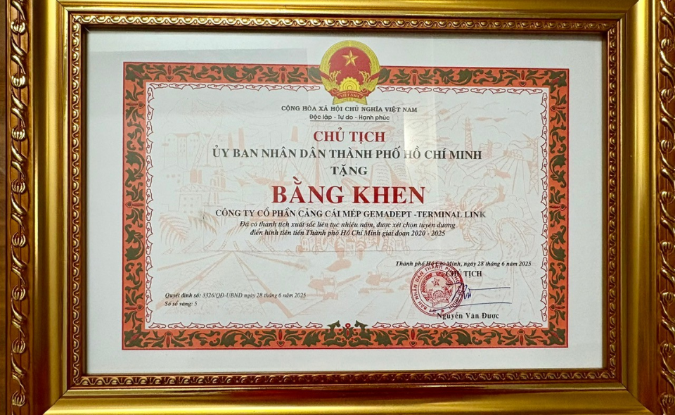 Thành phố Hồ Chí Minh khen tặng Cảng Gemalink là một điển hình tiên tiến xuất sắc trong phong trào thi đua yêu nước.