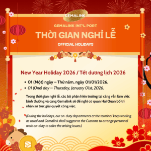 ✨CẢNG GEMALINK THÔNG BÁO LỊCH NGHỈ LỄ & KẾ HOẠCH LÀM HÀNG TẠI CẢNG NHÂN DỊP TẾT DƯƠNG LỊCH 2026✨
